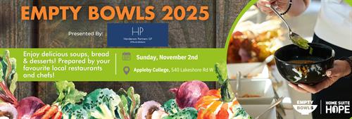 Home Suite Hope is excited to invite the Oakville Chamber members and the wider community to our signature annual fundraiser, Empty Bowls, presented by Henderson Partners LLP! 🍲